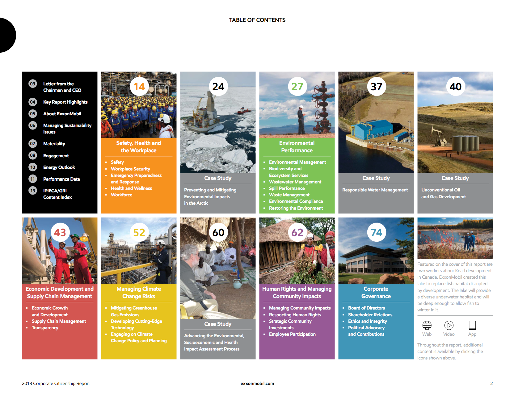 The 2013 ExxonMobil Corporate Citizenship Report- created for multiple Print and Digital formats.