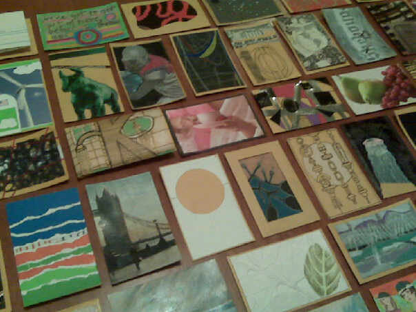 The Century Project: Mother and Daughter's ages added up to 100. We took an art weekend in Wisconsin and created 100 small works. Mixed Media.